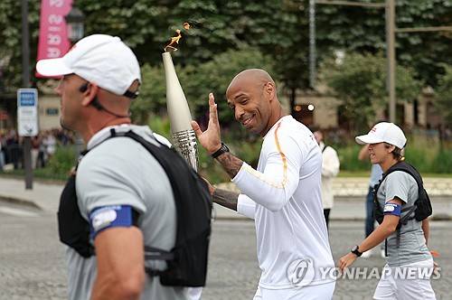 epaselect epa11477206 Thierry Henry holds the Paris 2024 Olympic flame as the Olympic Torch Relay arrives in Paris, France, 14 July 2024. The Olympic torch relay arrived in Paris on Bastille Day, the country's national holiday, and will visit some of the city's most famous landmarks on 14 and 15 July. In May 2024, the Olympic flame began its journey across France, including five overseas regions, visiting hundreds of towns and cities before the Olympic Games Opening Ceremony on 26 July. EPA/JULIEN MATTIA