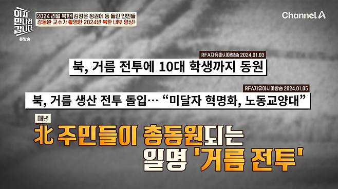 14일 밤 채널A '이제 만나러 갑니다'에서는 '2024 리얼 북한, 김정은 정권에 등 돌린 인민들'이라는 주제로 북한 주민들의 열악한 생활 실태가 낱낱이 공개됐다.