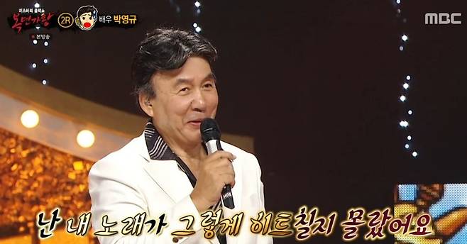이날 박영규는 "'복면가왕'에서 몇 번 섭외가 왔었는데 그땐 연기를 위해 거절했었다. 그러다 오늘 부른 '어느 60대 노부부의 이야기'가 지금 이 나이가 아니면 그 감정을 만들기 힘들 것 같아서 꼭 부르고 싶었다"면서 '복면가왕' 출연 비화를 전했다.