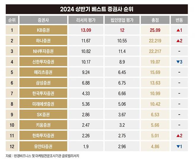 베스트 증권사 조사는 리서치와 법인영업의 평가 점수를 더해 종합 순위를 매긴다.