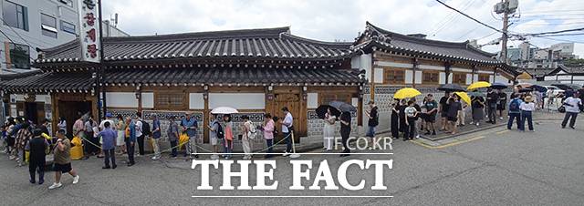 [더팩트ㅣ박헌우 기자] 초복인 15일 오후 서울 종로구의 한 삼계탕집 앞에 삼계탕을 먹으려는 시민들이 줄 서 있다.