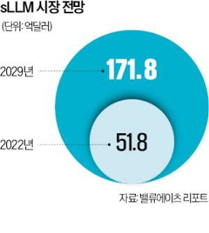 미국 시장조사 업체 밸류에이츠 리포트에 따르면 sLLM 시장 규모는 2022년 51억8000만달러(약 7조1400억원)에서 2029년 171억8000만달러(약 23조6000억원)로 커질 전망이다.