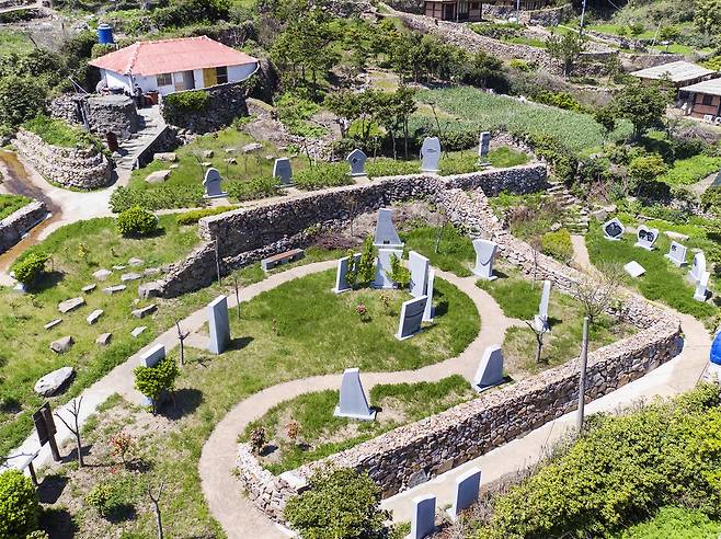 | ▲ 사리마을 유배문화공원에는 정약전 최익현 등 유배인들의 비석이 있다. |