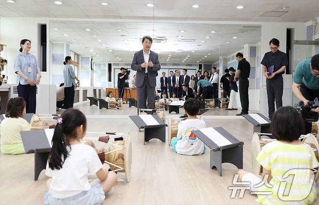 (서울=뉴스1) = 이주호 사회부총리 겸 교육부 장관이 15일 경기도 성남시 오리초등학교에서 늘봄학교 프로그램을 참관하고 있다. (교육부 제공) 2024.7.15/뉴스1