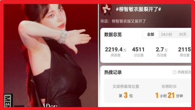 중국에서는 아찔한 의상 사고가 인기 검색어 3위에 오르기도 했다.