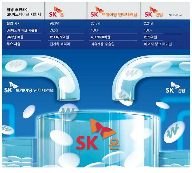 SK그룹이 에너지 계열사 간 합병과 더불어 SK온·SK트레이딩인터내셔널·SK엔텀 등 SK이노베이션 자회사 3곳의 동시 합병을 추진하는 것은 SK온 회생을 위한 응급 처방이 필요하다는 판단 때문으로 해석된다.