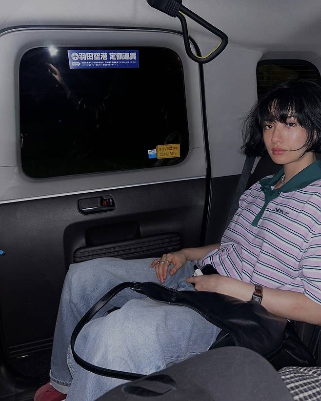 사진 속 나나는 가슴라인이 드러나는 앞트임 상의부터 걸그룹 뉴진스가 연상되는 캐주얼하면서도 스타일리시한 스타일의 의상을 입고 포즈를 취하고 있다.
