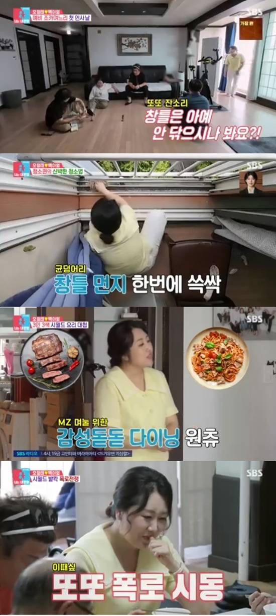 백아영은 솜처럼 뭉쳐질 정도로 많은 먼지를 보고 경악하며 예비 조카며느리가 오기 전 청소에 돌입했다.