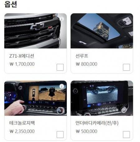 3세대 쉐보레 콜로라도는 국내에서 단일트림으로 판매되지만 여기서 끝이 아니다. 선택옵션을 따로 운영한다. 7290만 원이 풀옵션이 아니라는 의미다. 여기에 픽업트럭 전용 액세서리까지 운영한다.