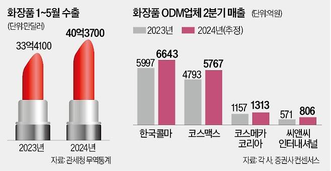 글로벌 시장에서 신진 K뷰티 브랜드들의 약진에 힘입어 코스맥스, 한국콜마 등 국내 화장품 제조업자개발생산(ODM) 업체들이 2분기에도 최대 실적을 경신했을 것으로 추정된다. 사드, 팬데믹 등 여파로 꺼진 K뷰티가 다시 호황기를 맞았다는 분석이 나온다.