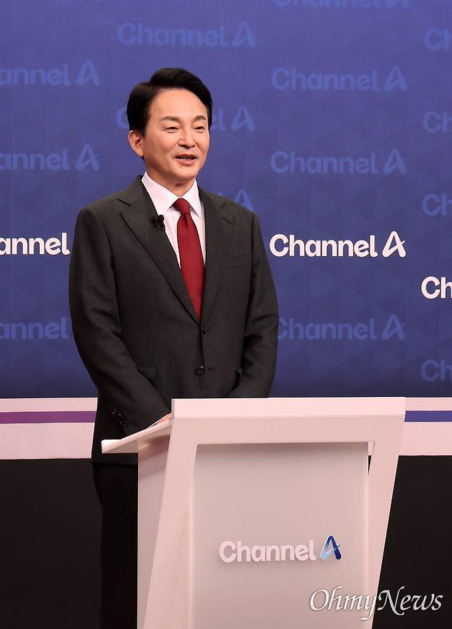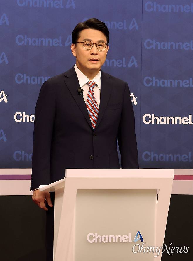 | ▲ 원희룡 국민의힘 당 대표 후보가 16일 오후 서울 마포구 상암동 채널A 스튜디오에서 열린 3차 당 대표 후보 방송토론회에서 토론 준비를 하고 있다. |