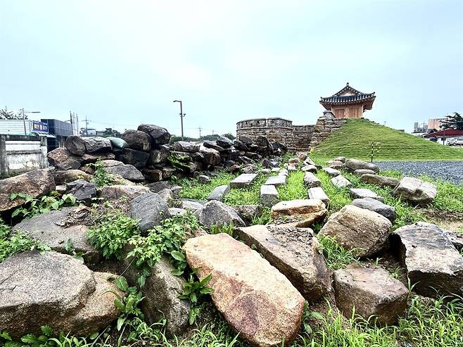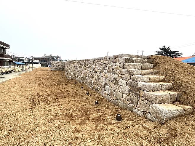 | ▲ 홍성군은 지난해 12월 북문 동측 성벽 일부를 복원하기도 했다. 북문 동측 성벽은 고려 시대 토성이 조선 시대 석성으로 변화하는 과정을 보여주는 성벽이다. |