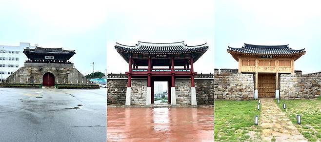 | ▲ 홍주읍성 4대문 중 하나인 북문(망화문, 望華門)이 복원됐다. 북문(망화문,望華門) 복원은 지난 2012년 남문(홍화문,洪化門) 복원 이후 13년 만이다.이로써 동문(조양문,朝陽門), 남문(홍화문,洪化門)에 이어 북문까지 3개 문루가 복원된 것이다. (사진 왼쪽부터, 동문, 남문, 북문) |