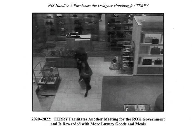 미 검찰은 우리나라 국정원 간부의 신용카드 결제 내역과 매장 CCTV 화면을 통해 혐의 내용을 파악했으며, 또한 추후 이뤄진 수미 테리의 주거지 압수수색을 통해 증거를 확보했다고 밝혔습니다. 관련 증거 사진도 공소장을 통해 공개했습니다.