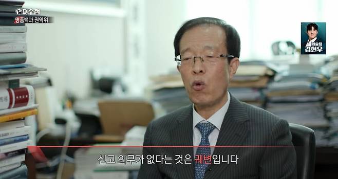 | ▲ 이명박 정부에서 법제처장을 지낸 이석연 변호사는 16일 방송된 MBC ‘PD수첩’ 인터뷰에서 "대통령은 공직자 1호"라면서 "외국인 준 선물이라 신고 의무가 없다는 건 궤변"이라고 지적했다. |