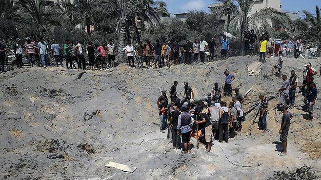 적신월사는 이날 가자지구 남부 중심도시인 칸유니스 서쪽 해안에 위치한 알마와시 지역의 한 주유소 인근에 폭탄이 떨어져 17명이 숨졌다고 밝혔습니다.