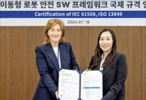 최고은 삼성전자 삼성리서치 로봇플랫폼팀장(오른쪽)은 “이번 국제 규격 인증 취득으로 삼성 로봇 소프트웨어가 안전성과 신뢰성을 확보했음을 입증했다”며 “로봇 기술 발전에 기여할 수 있도록 노력하겠다”고 말했다.