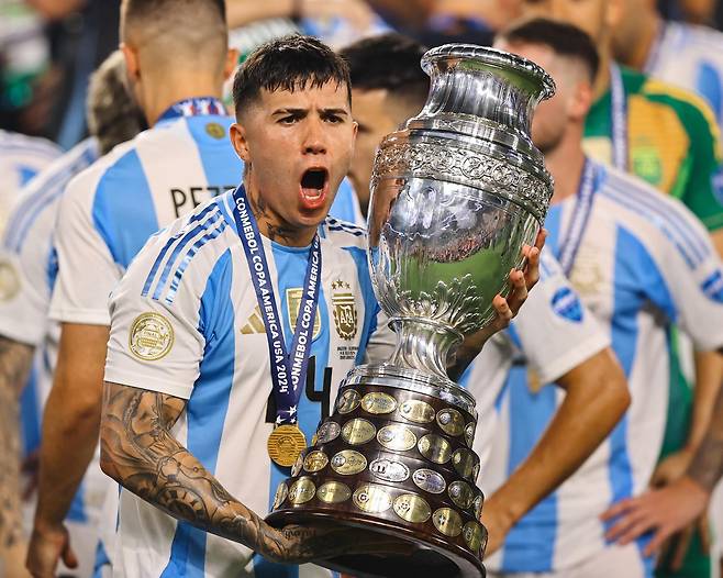 엔조가 소속된 아르헨티나 대표팀은 지난 15일 오전 10시 15분(한국시간) 미국 플로다에 위치한 하드록 스타디움에서 펼쳐진 2024 남미축구연맹(CONMEBOL) 코파 아메리카 결승전 콜롬비아와 맞대결에서 연장 혈투 끝에 1-0으로 승리했다. 아르헨티나는 이번 결과로 대회 우승을 차지했다.