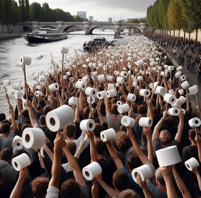 반면 이를 비판하는 시민들은 온라인에서 ‘센강에서 용변을 보자’는 문구를 해시태그(#)를 달아 공유하며 항의하고 있다. 소셜미디어엔 센강을 따라 변기가 줄줄이 설치된 장면이나 사람들이 화장실 휴지를 들고 센강에 모인 모습이 합성된 ‘가짜 사진’이 번지고 있다.