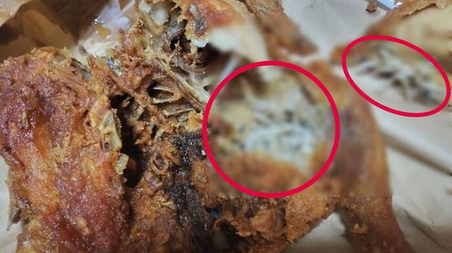 ▲ 구더기가 나왔다는 의혹이 제기된 논란의 통닭