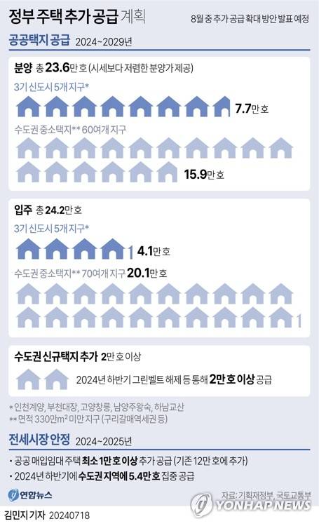 (서울=연합뉴스) 김민지 기자 = 정부가 2029년까지 '3기 신도시'를 중심으로 공공택지 물량 23만6천호를 시세보다 크게 저렴한 가격으로 공급하겠다고 18일 밝혔다.