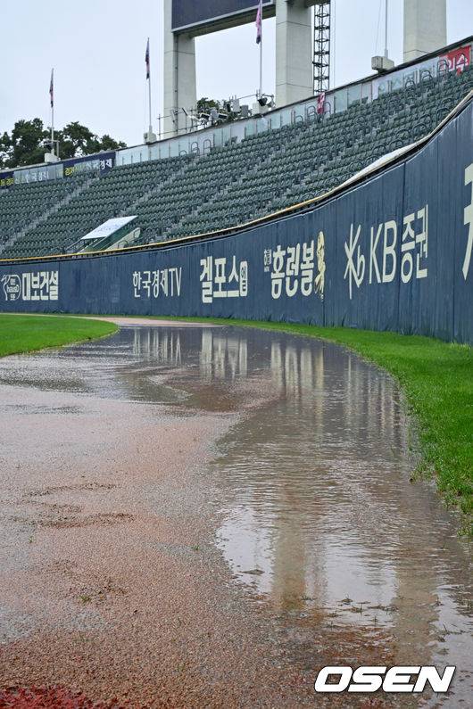잠실구장 외야에 물이 고여있다. 2024.07.18 /cej@osen.co.kr