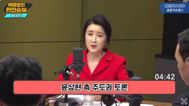 ◇ 박재홍> 박재홍의 한판승부 함께하고 계시고요. 네 분의 대변인들이 아주 모범적으로 잘 진행하고 계시고요. 이어서 윤상현 캠프의 이지애 대변인의 순서입니다.