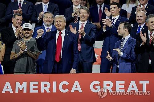 epa11486478 Republican presidential nominee Donald Trump arrives on the fourth day of the Republican National Convention (RNC) at Fiserv Forum in Milwaukee, Wisconsin, USA, 18 July 2024. The convention comes days after a 20-year-old Pennsylvania man attempted to assassinate former president and current Republican presidential nominee Donald Trump. The 2024 Republican National Convention is being held 15 to 18 July 2024 in which delegates of the United States' Republican Party select the party's nominees for president and vice president in the 2024 United States presidential election. EPA/ALLISON DINNER