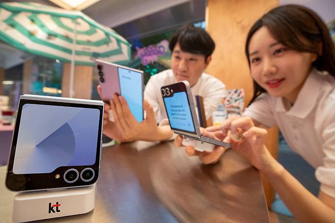 보험 혜택과 새 폰 교체 혜택을 모두 제공하는 ‘KT365폰케어 폴드6·플립6’도 선보인다. 파손·분실 보상은 물론 스마트기기 파손도 지원한다. 36개월 뒤 기존 폰 반납 시 새 폰으로 교체할 수도 있다. 스페셜 요금제(월 10만원) 이상 고객은 멤버십 포인트 차감 할인으로 KT365폰케어 폴드6·플립6를 기존 금액보다 저렴한 월 2770원에 이용할 수 있다