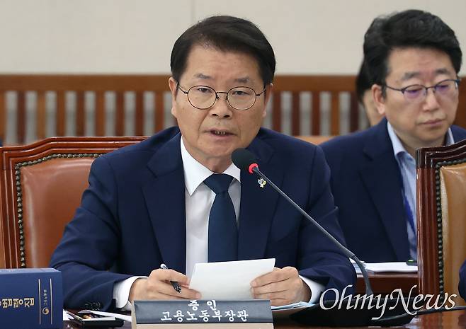 | ▲ 이정식 고용노동부 장관이 지난달 27일 서울 여의도 국회에서 열린 환경노동위원회 노동조합 및 노동관계조정법 일부개정법률안에 대한 입법청문회에 증인으로 출석해 의원들의 질의에 답변하고 있다. |
