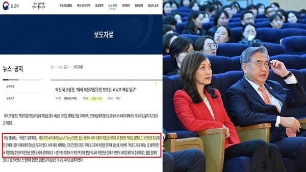 | ▲ 고민정 더불어민주당 의원이 페이스북에 박진 전 외교부 장관과 수미 테리 미국외교협회 선임연구원이 탈북을 다룬 다큐멘터리 상영회에서 함께 앉아 있는 사진을 올렸다. |