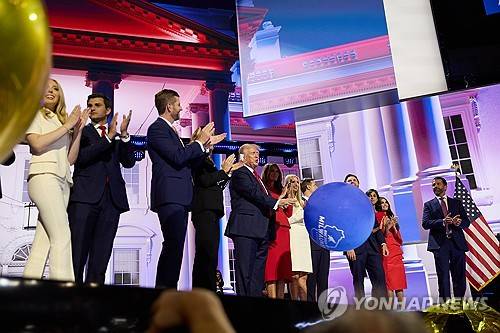 epa11486911 Republican presidential nominee Donald J. Trump (C) and his running mate Republican vice presidential nominee Senator JD Vance (4-R) and their families reacts on stage at the end of the fourth day of the Republican National Convention (RNC) at Fiserv Forum in Milwaukee, Wisconsin, USA, 18 July 2024. The convention comes days after a 20-year-old Pennsylvania man attempted to assassinate former president and current Republican presidential nominee Donald Trump. The 2024 Republican National Convention is being held from 15 to 18 July, in which delegates of the United States' Republican Party select the party's nominees for president and vice president in the 2024 United States presidential election. EPA/ALLISON DINNER