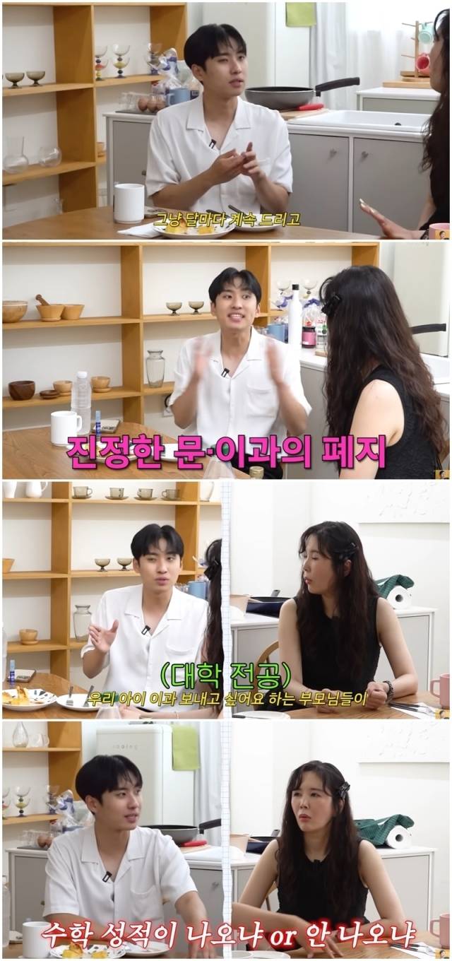 미미미누는 “문이과통합이기 때문에 사회와 과학을 무조건 다 봐야한다. 그리고 이과 보내고 싶어하는 부모가 80%가 넘는데, 그 기준은 수학을 잘하느냐 안하느냐로 나누어야한다”고 말했다.
