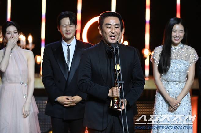 제3회 청룡시리즈어워즈(Bluedragon Series Awards)가 19일 인천 파라다이스시티에서 열렸다. 대상을 수상한 무빙 류승룡이 기뻐하고 있다. 인천=허상욱 기자 wook@sportschosun.com/2024.07.19/