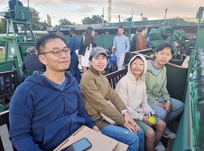 올잉글랜드클럽 근처에 사는 준우네 가족은 주재원으로 영국에 3년 머무는 동안 매 해 윔블던을 방문했다고 한다. 아들 둘이 윔블던 티셔츠에 모자까지 쓰고 김동재 선수를 응원하며 사인을 받았다.