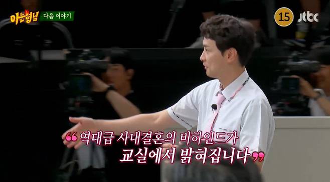이와 함께 화면에는 '역대급 사내 결혼의 비하인드가 교실에서 밝혀집니다'라는 자막을 삽입해 궁금증을 자아냈다.