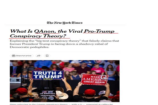 그런데 그에 앞서 알아보셔야 할 게 QAnon. 들어보셨어? "친"트럼프 음모론자들을 큐아논이라고 부릅니다.