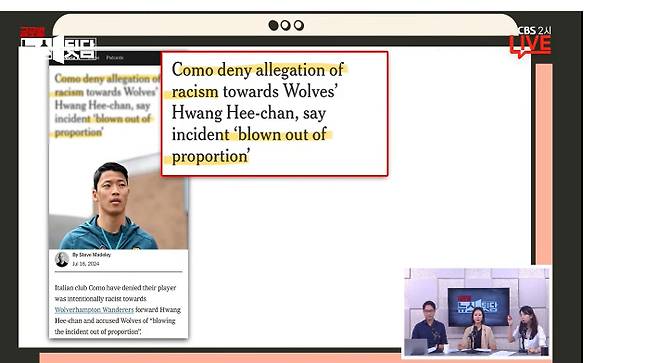 ▶박수정> 이런 걸 교묘한 인종차별이라고 분류해요. 비판적으로 반응하는 사람을 예민한 사람 취급하는 'Microaggression(미세공격)'이라고 합니다. 유럽에선 일상적인 개념이 됐어요. 황희찬의 소속구단 울버햄튼은 성명문을 내고 "유럽축구연맹에 공식 항의서를 제출할 것"이라고 하고.. 황희찬 선수도 입장을 냈습니다.