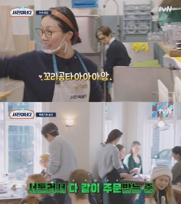 지난 19일 방영된 tvN <서진이네2> 4회는 몰려드는 손님 주문에 연이은 서빙 실수가 벌어진 곰탕집의 분주한 하루 이야기가 그려졌다. 최우식, 정유미에 이어 세번째로 메인 셰프 임무를 부여 받은 '상무님' 박서준의 현란한(?) 주방 지휘와 더불어 계속된 오픈런 상황에 정신 혼미해진 서빙 담당 직원들의 고군분투가 재미와 웃음을 선사했다.