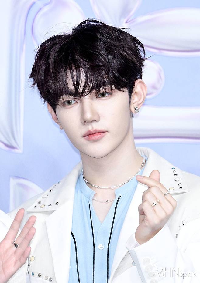 제로베이스원 장하오가 포즈를 취하고 있다.