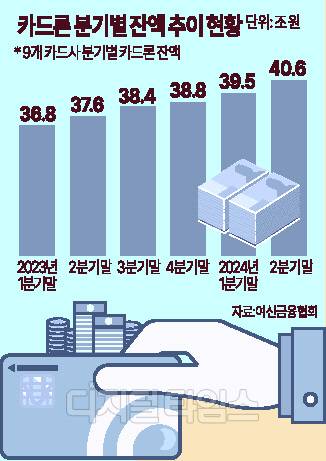 올해 들어 카드론 잔액이 2조원가량 불어나며 41조원에 달하는 것으로 나타났다. 18%에 달하는 고금리에도 급하게 돈을 빌리려는 중·저신용자들이 카드사로 몰린 영향으로 풀이된다.