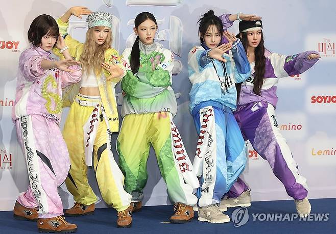 (영종도=연합뉴스) 류효림 기자 = 그룹 뉴진스가 21일 오후 인천 영종도 인스파이어 엔터테인먼트 리조트에서 열린 SBS 2024 가요대전 서머 블루카펫 행사에서 포즈를 취하고 있다. 2024.7.21