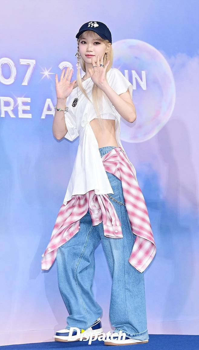 '르세라핌' 김채원은 요정같은 비주얼로 눈길을 끌었다. 볼캡과 데님진으로 연출한 힙한 스타일도 돋보였다.