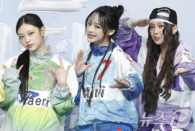 (인천=뉴스1) 권현진 기자 = 뉴진스 해린(왼쪽부터)과 민지, 혜인이 21일 오후 인천광역시 중구 인스파이어 아레나에서 열린 ‘2024 SBS 가요대전 서머’ 블루카펫 행사에서 포즈를 취하고 있다. 2024.7.21/뉴스1