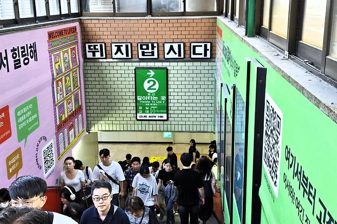 팝업스토어, '줄 서는 식당' 등이 워낙 많은 성수역 일대인 터라 '지하철까지 웨이팅을 서야 하냐'는 웃음 섞인 반응도 나오긴 하지만, 실제로는 역의 수용량이 한계를 초과했다는 위험 신호인 탓에 위험 요소가 크다. 이에 따라 성동구청은 물론 경찰까지 나서 혼잡도 완화에 애를 쓰곤 한다.