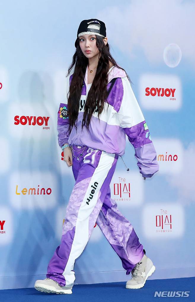 [인천=뉴시스] 김혜진 기자 = 그룹 뉴진스 혜인이 21일 오후 인천 중구 인스파이어아레나 리조트에서 열린 2024 SBS가요대전 서머 블루카펫에서 포즈를 취하고 있다. 2024.07.21. jini@newsis.com