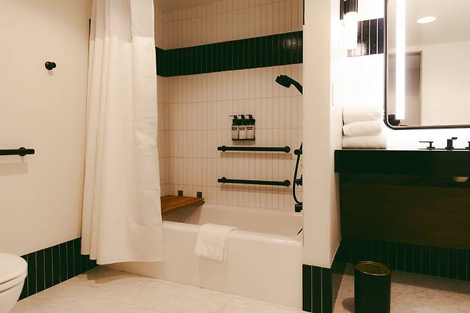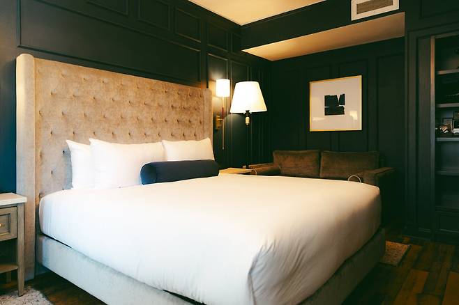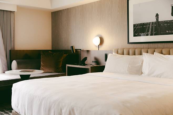 객실(총 686개)도 새롭게 단장해 편의성과 쾌적함을 한껏 높였다. 미국 호텔을 보면 샤워기가 고정된 곳들이 많아 꽤 불편한데, 이곳은 샤워호스 방식이라 무척 편하다. 흰색과 검은색 등 무채색으로 꾸며진 방은 중후한 멋이 있고, 유리창을 통해 샌프란시스코의 스카이라인을 볼 수 있는 것도 장점이다.