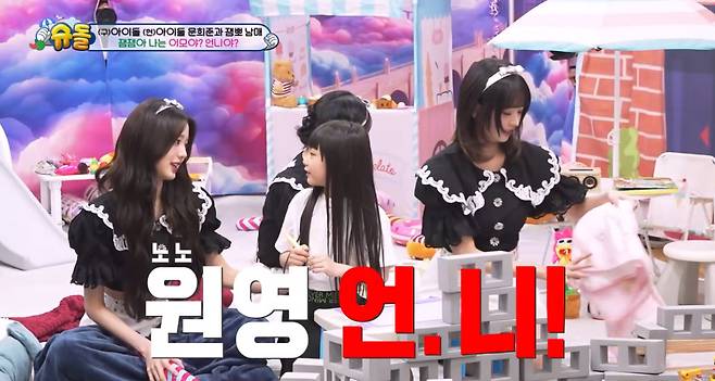 장원영은 이에 충격받은 듯 "원영 언니"라고 빠르게 정정해 줬고, 레이는 "여기 다 언니들이야"라고 설명했다.