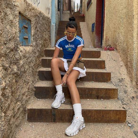 모델 송해나의 블록코어 룩에선 걸크러시 바이브가 물씬 느껴집니다. 경쾌한 모터 레이싱 저지를 선택한 뒤 파라슈트 팬츠와 함께 매치했는데요, 마무리로 날렵한 복싱 슈즈를 신어 쿨하고 스포티한 매력을 끌어올렸어요.