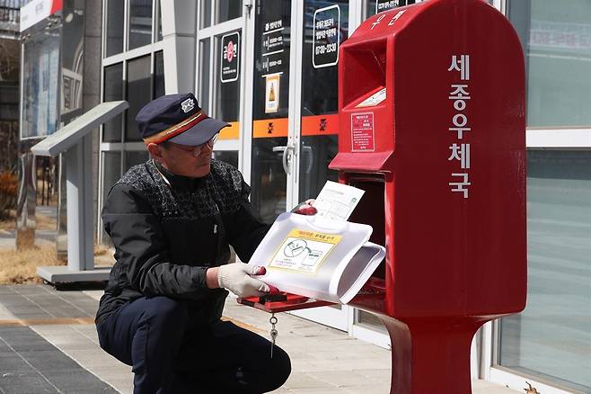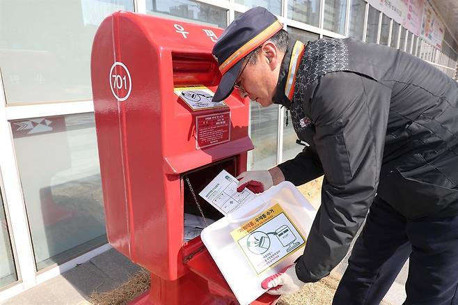 | ▲ 세종우체국 집배원이 우체통에서 폐의약품을 회수하고 있다. |